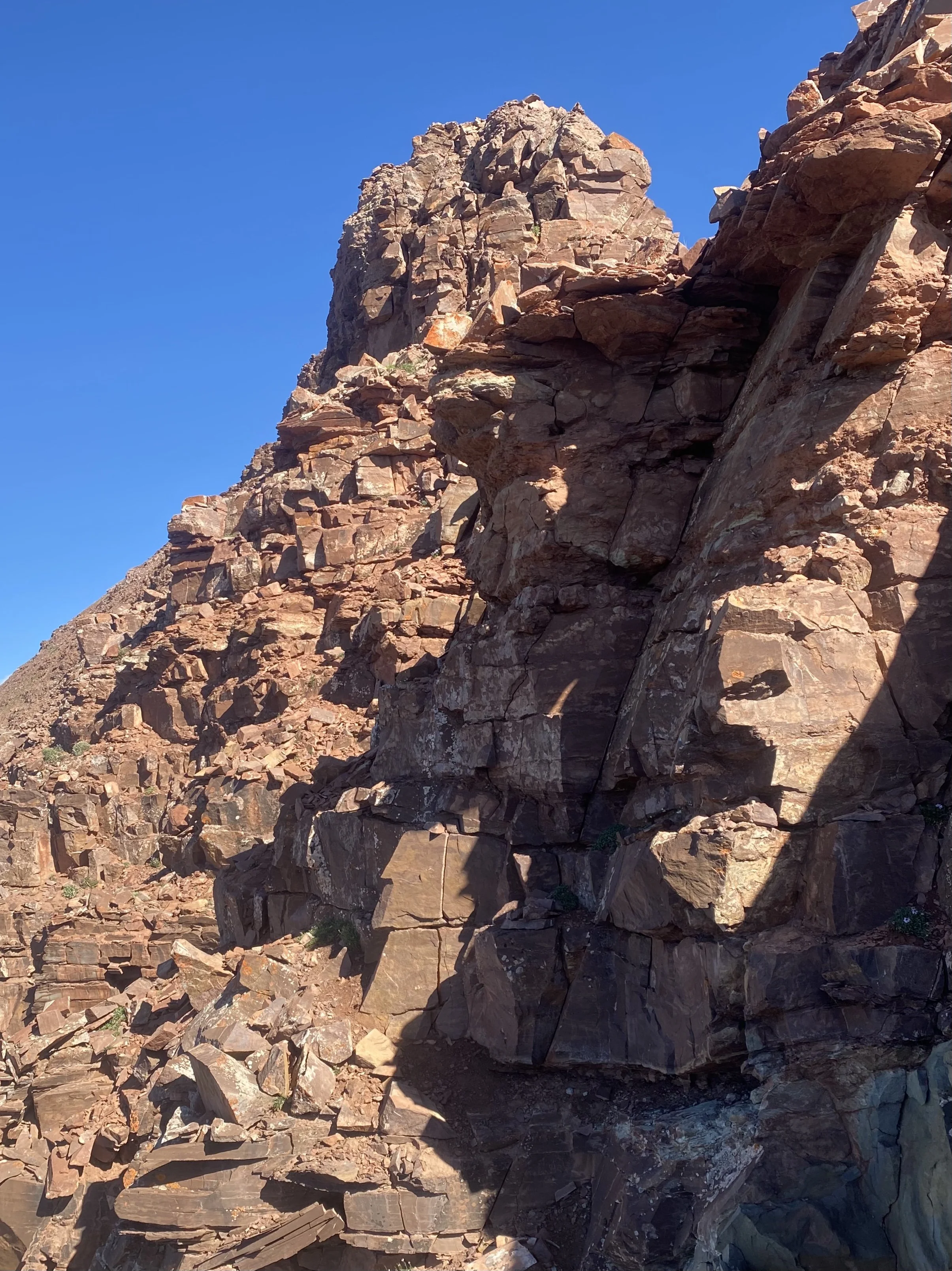As I started up the ridge from West Maroon Pass, I could tell immediately that it would be challenging. I traversed the first few obstacles easily, and then the going got tougher. The rock in this area can be very flaky, and it was here. I don’t climb up anything that I can’t climb back down, but sometimes your mindset can shift in the middle of an activity. I found myself on a ledge, looking up at flaky rock that seemed impassible, looking down each side at big drops, and realizing that simply turning my body around to face the other direction was going to be difficult. I suffer from vertigo – my head started to spin and I knew panic was just around the corner.